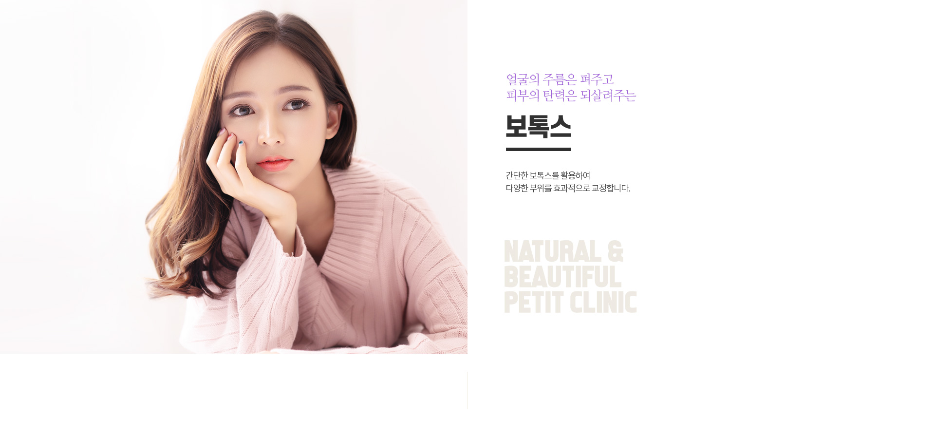 얼굴 근육의 표정 주름에 효과가 뛰어나 이마주름, 미간주름, 눈가주름 개선에 탁월합니다.